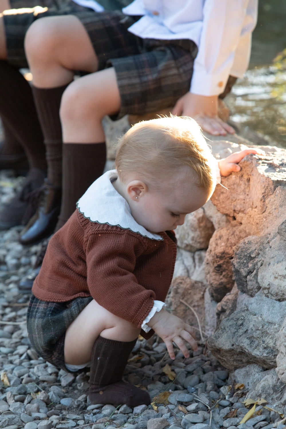 Chaqueta de punto de algodón para bebé en tono chestnut ideal para combinar con nuestras camisas, blusas, ranitas, pantalones y petos