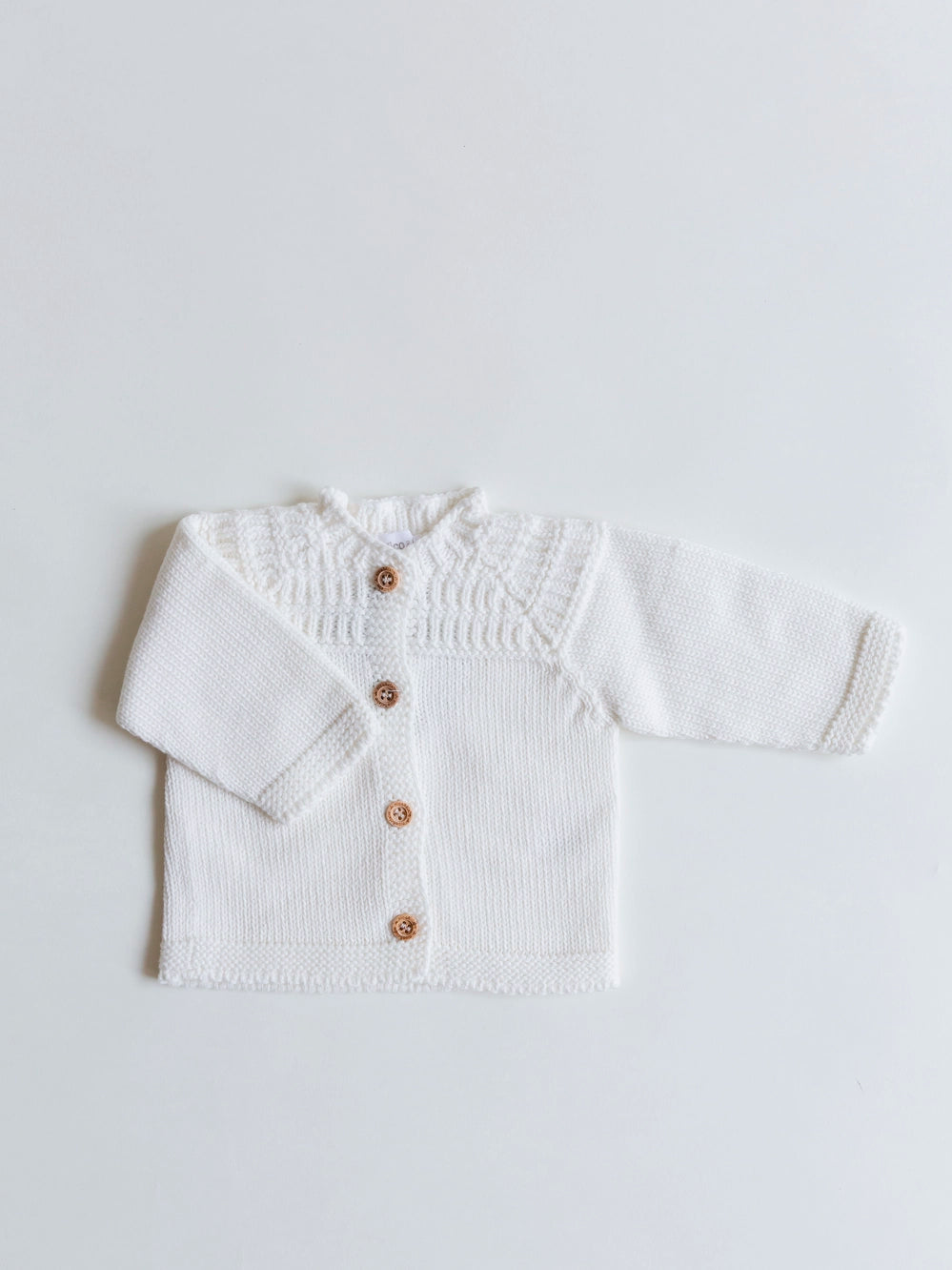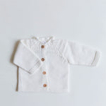 Chaqueta de punto de algodón para bebé en tono Ivory ideal para combinar con nuestras camisas, blusas, ranitas, pantalones y petos