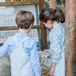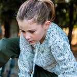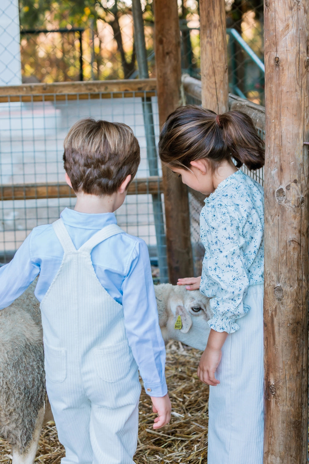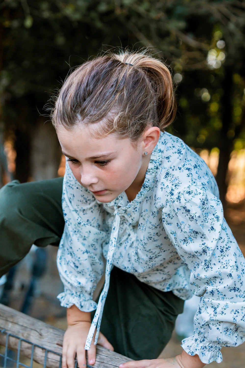 Blusa para niña confeccionada con algodón 100% de alta calidad, ideal para cuidar la piel delicada de los más pequeños. Textura suave, ligera y transpirable que garantiza comodidad durante todo el día, mientras que su diseño dulce y versátil la convierte en una prenda perfecta para cualquier ocasión. Suave estampado de florecitas en azul y verde con volante en cuello y puños para combinar con nuestras prendas de la colección.