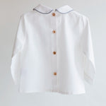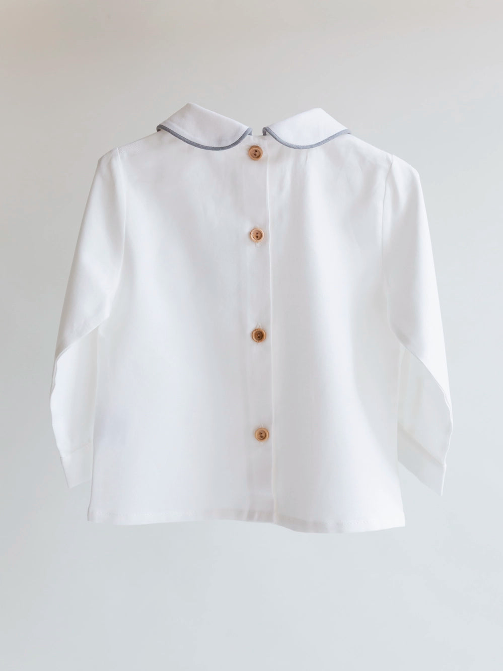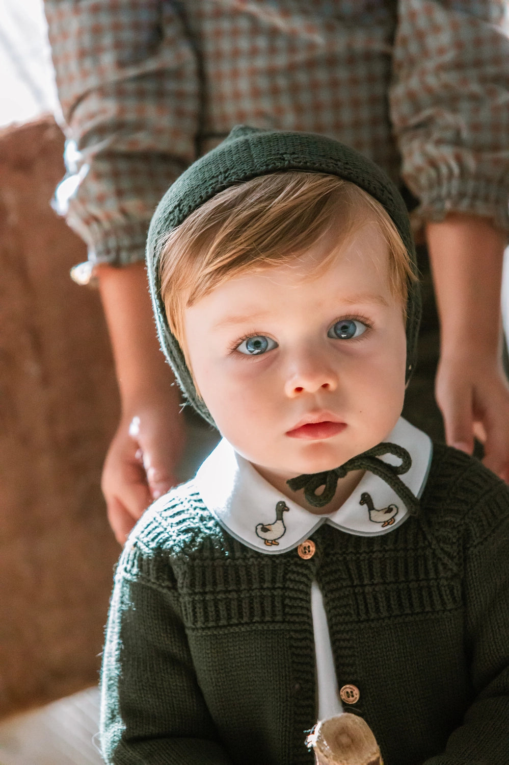 Camisa para bebé confeccionada con algodón 100% de alta calidad, ideal para cuidar la piel delicada de los más pequeños. Textura suave, ligera y transpirable que garantiza comodidad durante todo el día, mientras que su diseño dulce y versátil la convierte en una prenda perfecta para cualquier ocasión. Color blanco roto rematado en vivo verde y con dos patitos bordados en el cuello para combinar con nuestras prendas de la colección.