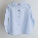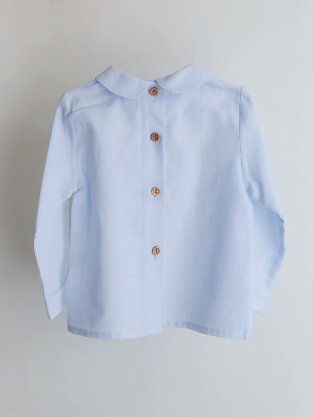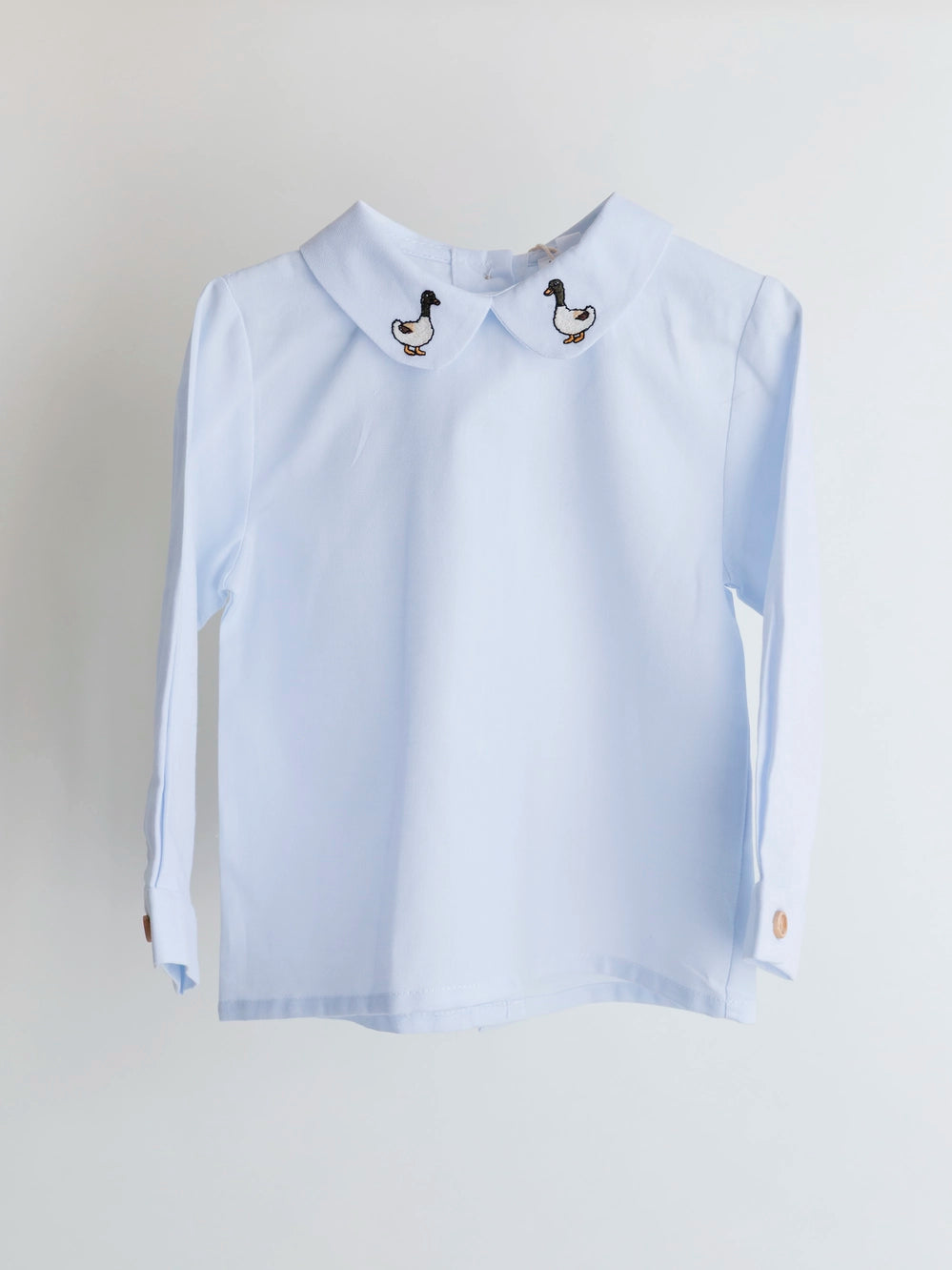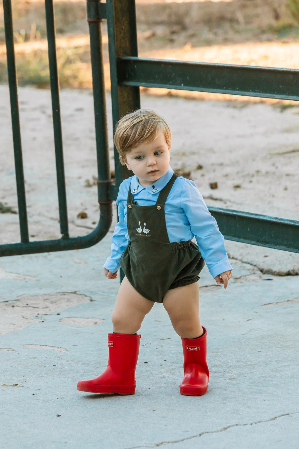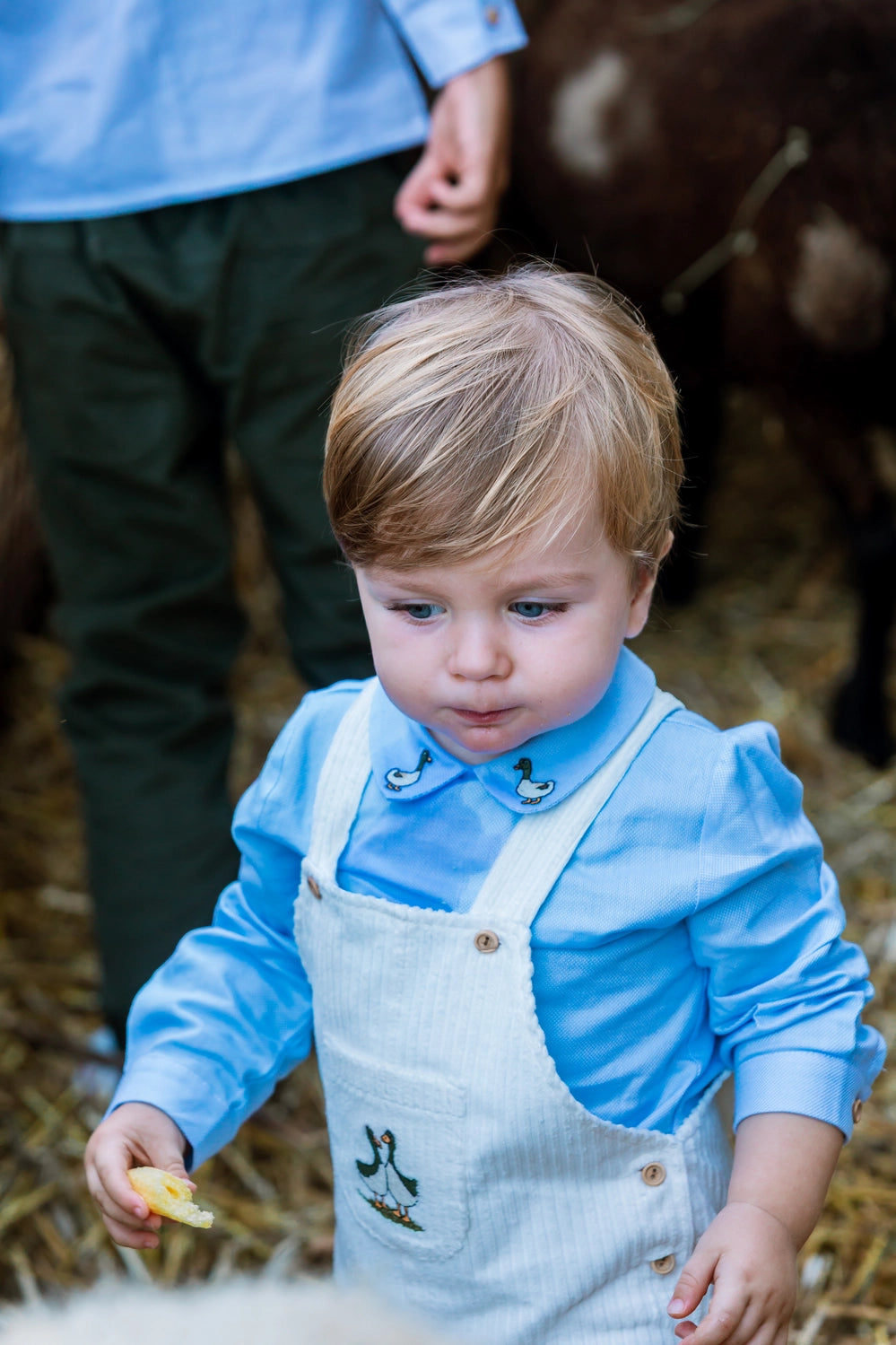 Camisa para bebé confeccionada con algodón 100% de alta calidad, ideal para cuidar la piel delicada de los más pequeños. Textura suave, ligera y transpirable que garantiza comodidad durante todo el día, mientras que su diseño dulce y versátil la convierte en una prenda perfecta para cualquier ocasión. Color azul oxford con dos patitos bordados en el cuello para combinar con nuestras prendas de la colección.