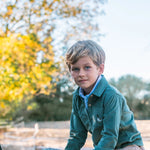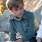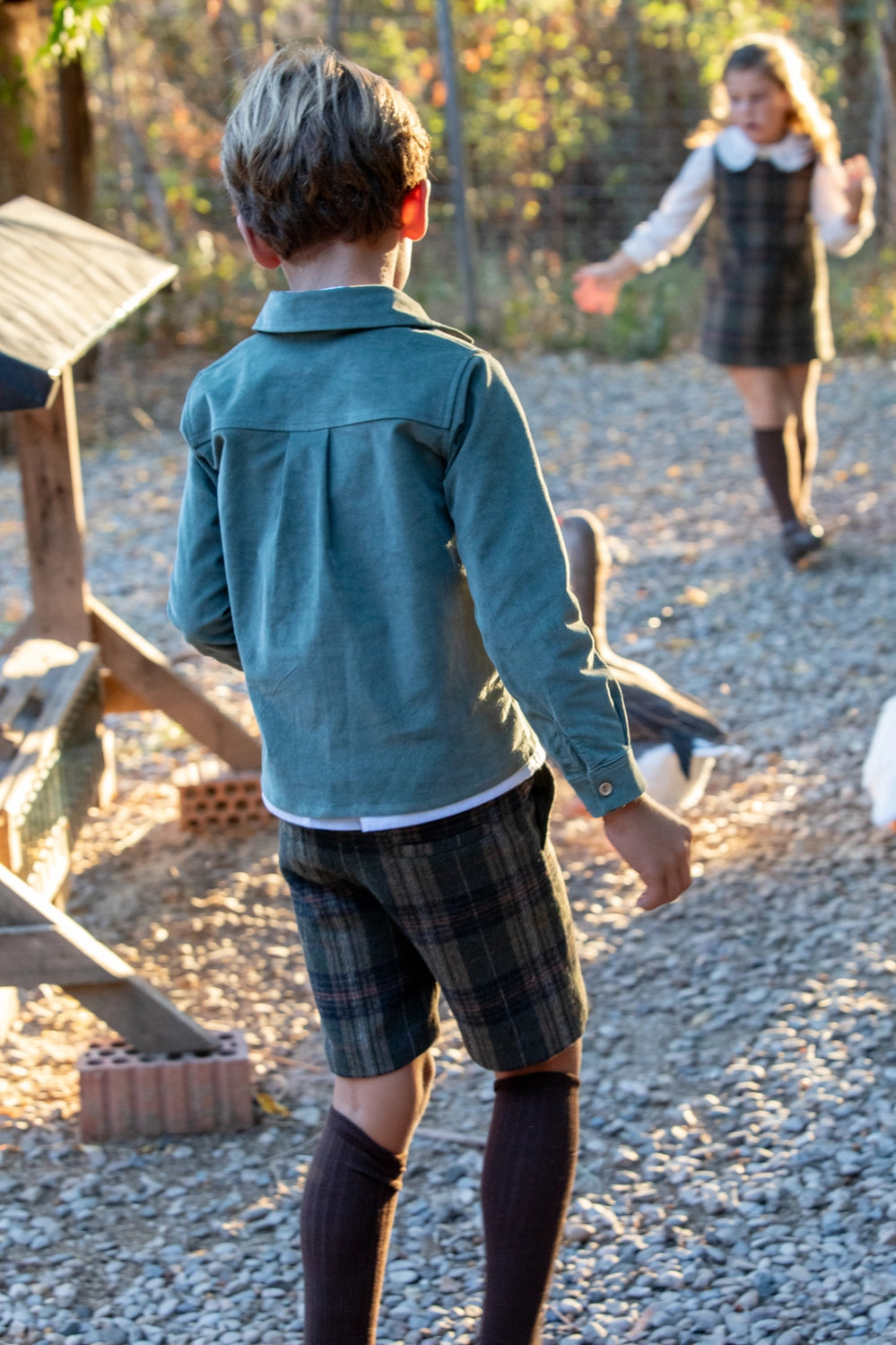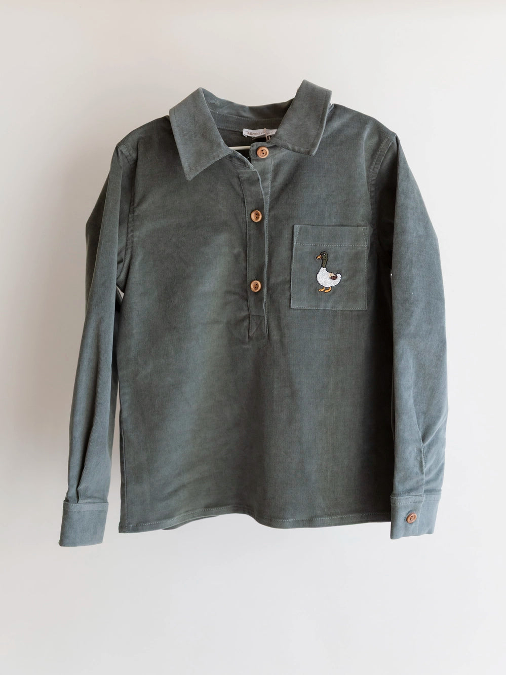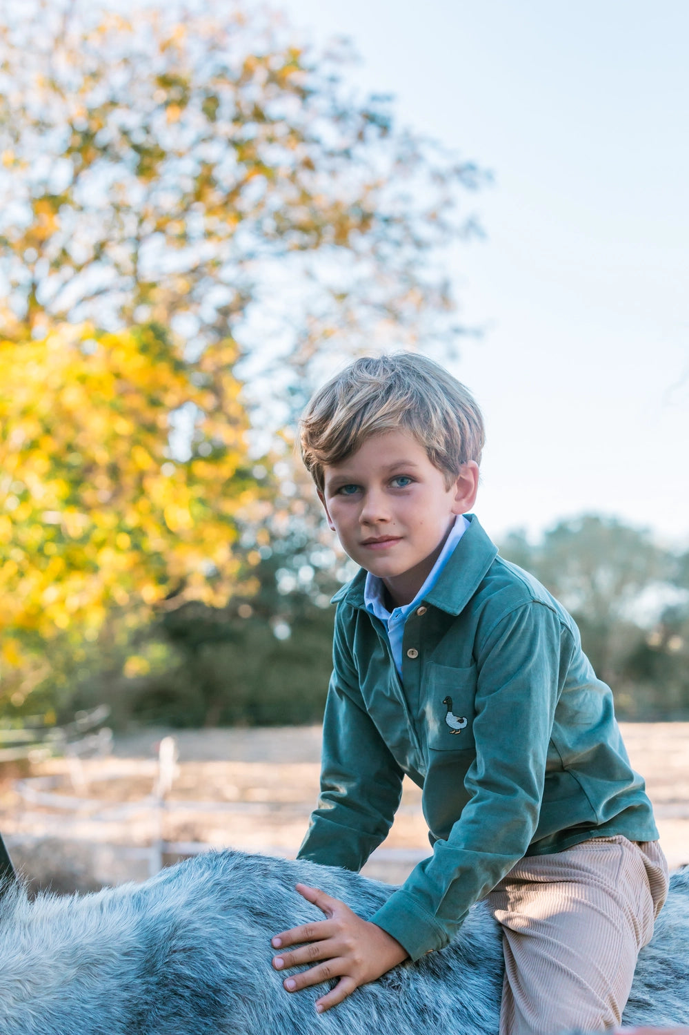 Sobrecamisa para niño confeccionada con pana de algodón 100% de alta calidad en color green. Tiene el patito bordado para combinar con nuestras prendas de la colección.