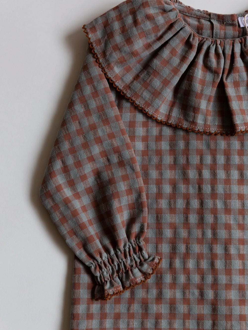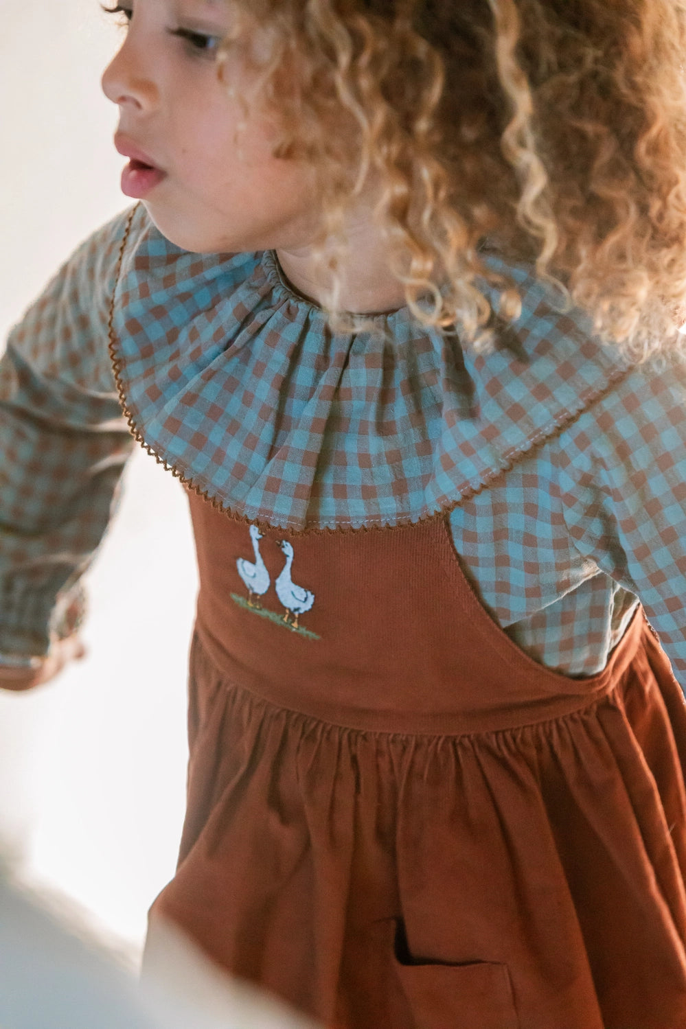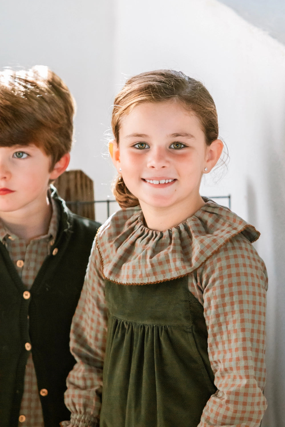 Blusa para niña confeccionada con algodón 100% de alta calidad, ideal para cuidar la piel delicada de los más pequeños. Textura suave, ligera y transpirable que garantiza comodidad durante todo el día, mientras que su diseño dulce y versátil la convierte en una prenda perfecta para cualquier ocasión. Color vichy cottage con volante en cuello y puños para combinar con nuestras prendas de la colección.