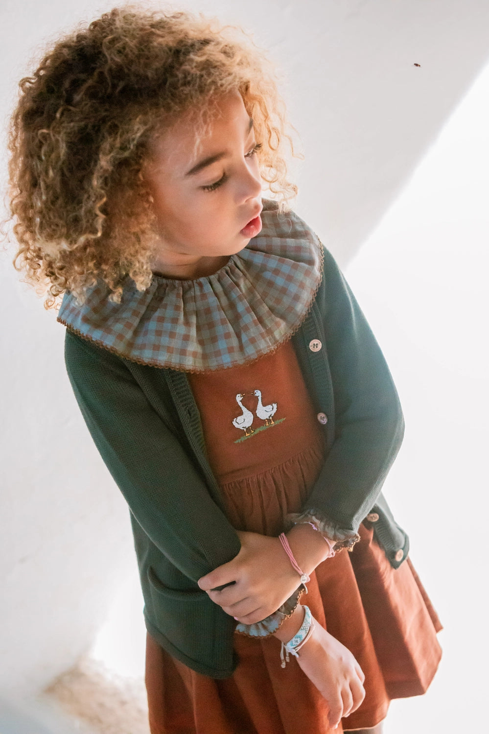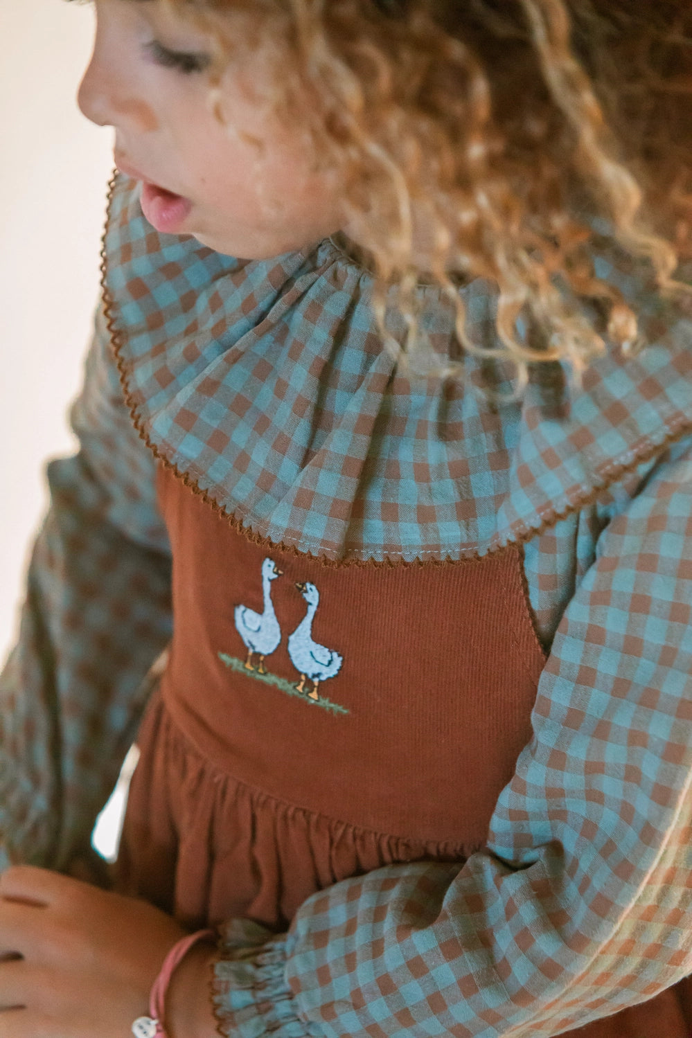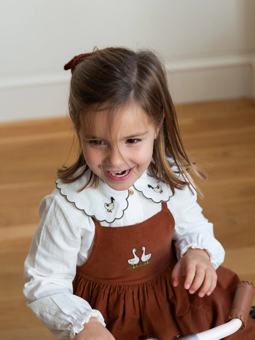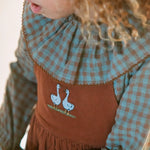 Pichi para niña confeccionado en pana de algodón 100% de alta calidad, ideal para cuidar la piel delicada de los más pequeños. Textura suave, ligera y transpirable que garantiza comodidad durante todo el día, mientras que su diseño dulce y versátil la convierte en una prenda perfecta para cualquier ocasión. Pana color chestnut con lazadas y patito bordado para combinar con nuestras prendas de la colección.