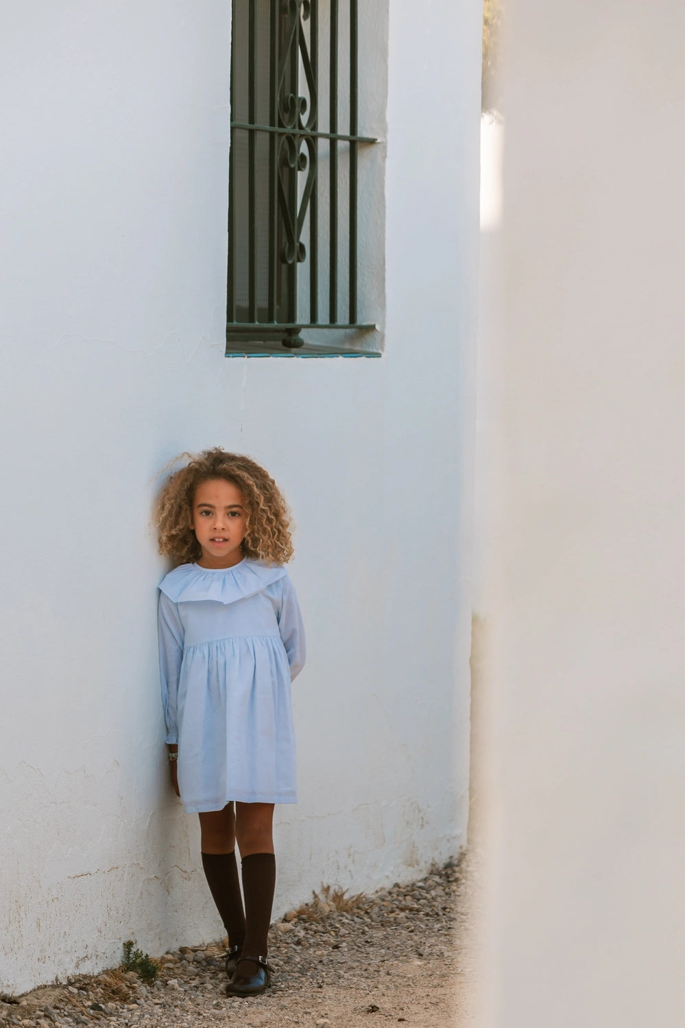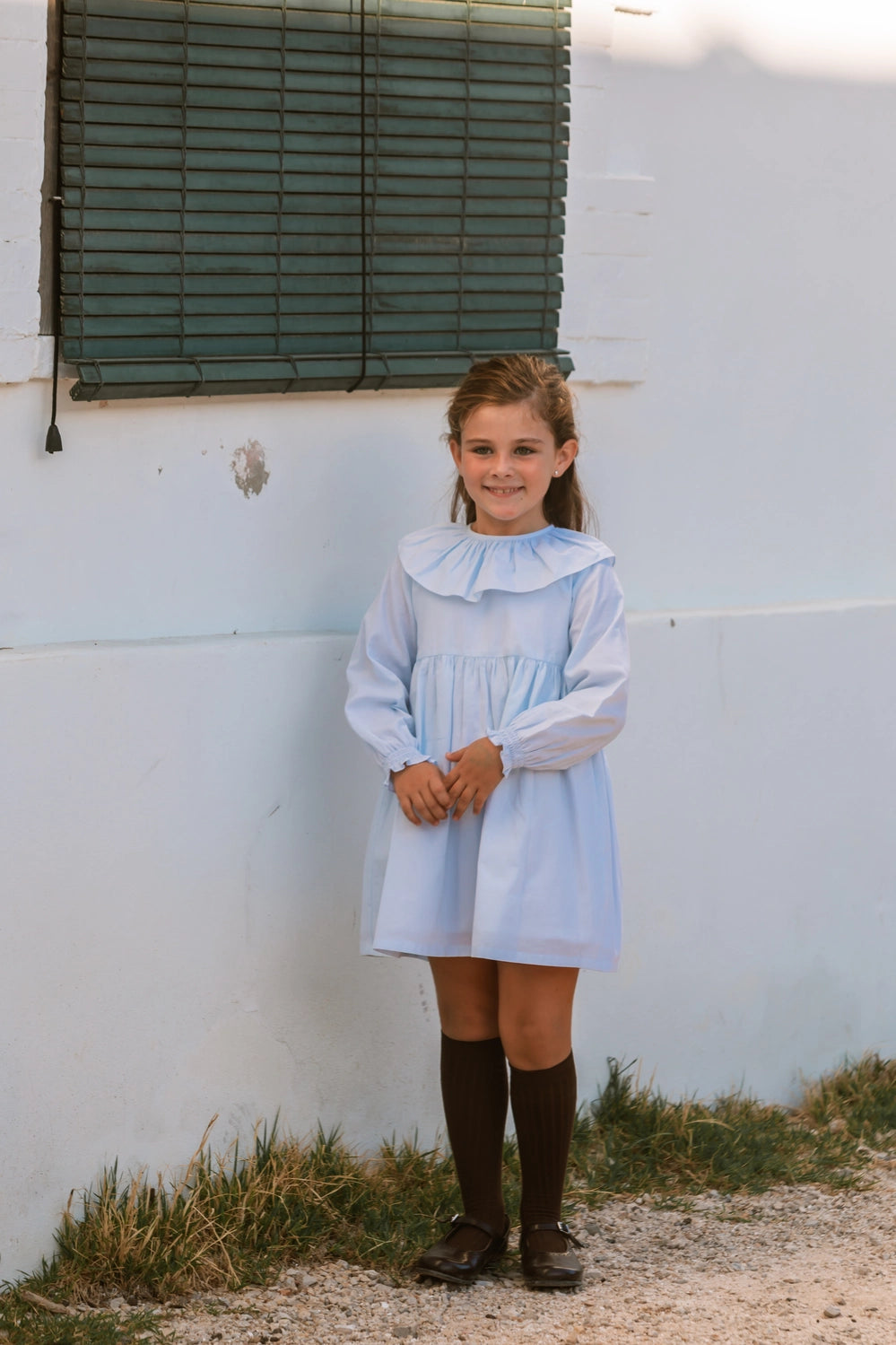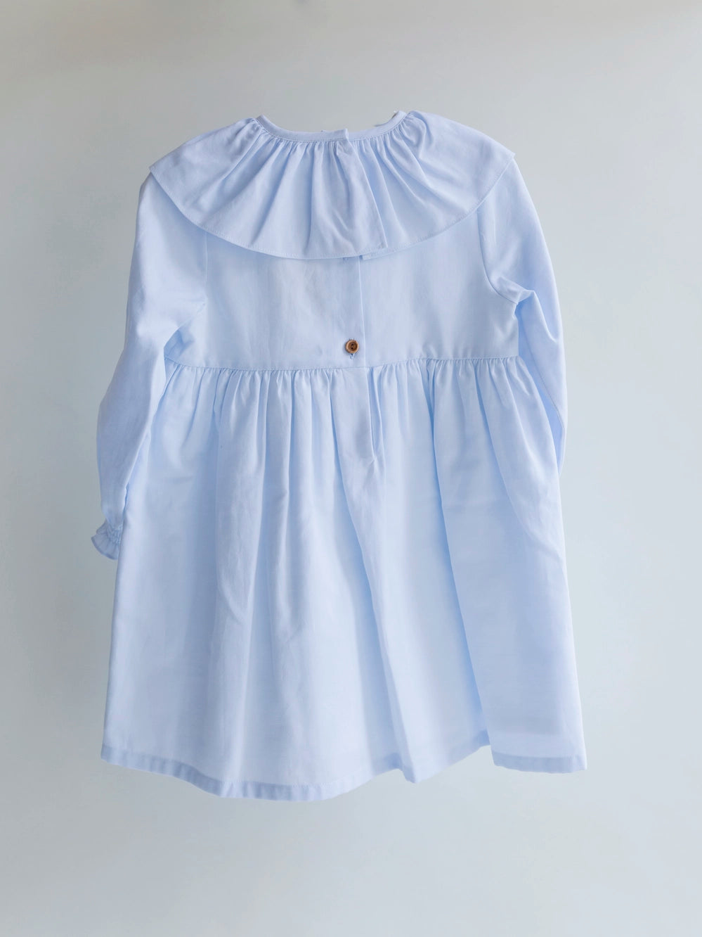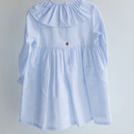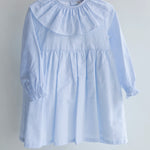 Vestido para niña confeccionado con algodón 100% de alta calidad, ideal para cuidar la piel delicada de los más pequeños. Textura suave, ligera y transpirable que garantiza comodidad durante todo el día, mientras que su diseño dulce y versátil la convierte en una prenda perfecta para cualquier ocasión. Suave oxford en azul con cuello volante y puños para combinar con nuestras prendas de la colección.