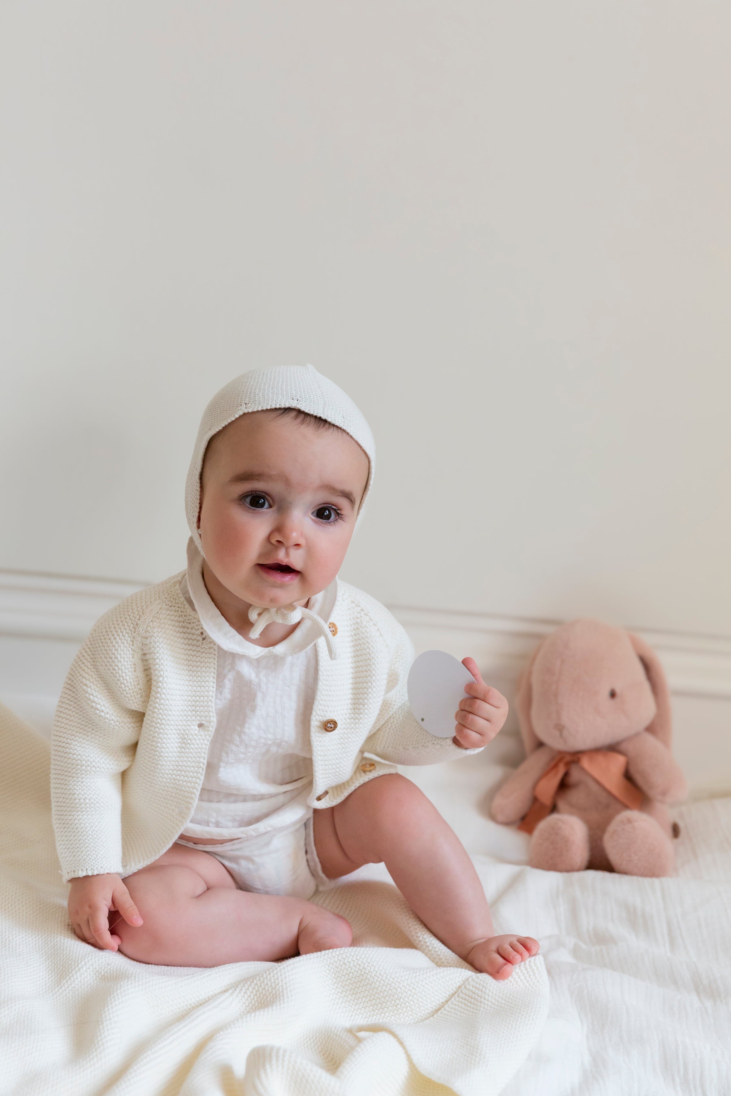 Combina con nuestros peleles, ranitas y jesusitos así como con capota y patucos en los mismos tonos.