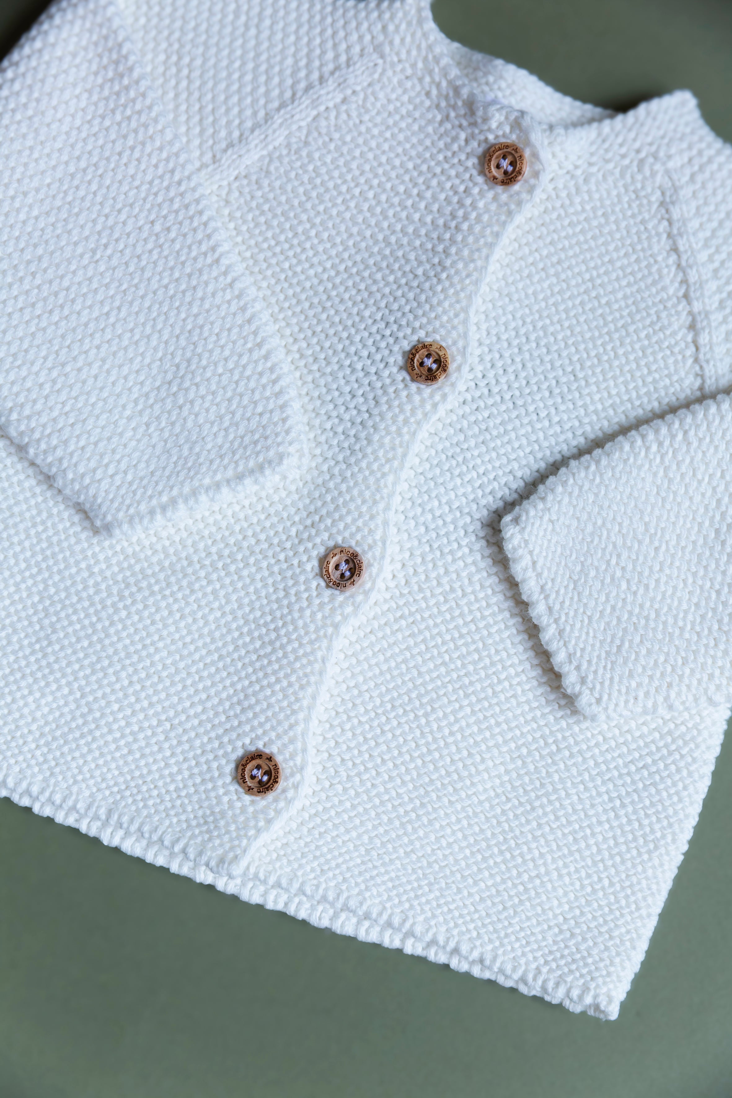 Chaqueta confeccionada en algodón 100%, suave y con un punto muy agradable. Se puede utilizar en cualquier época del año ya que al ser algodón en temperaturas suaves sigue siendo adecuada.