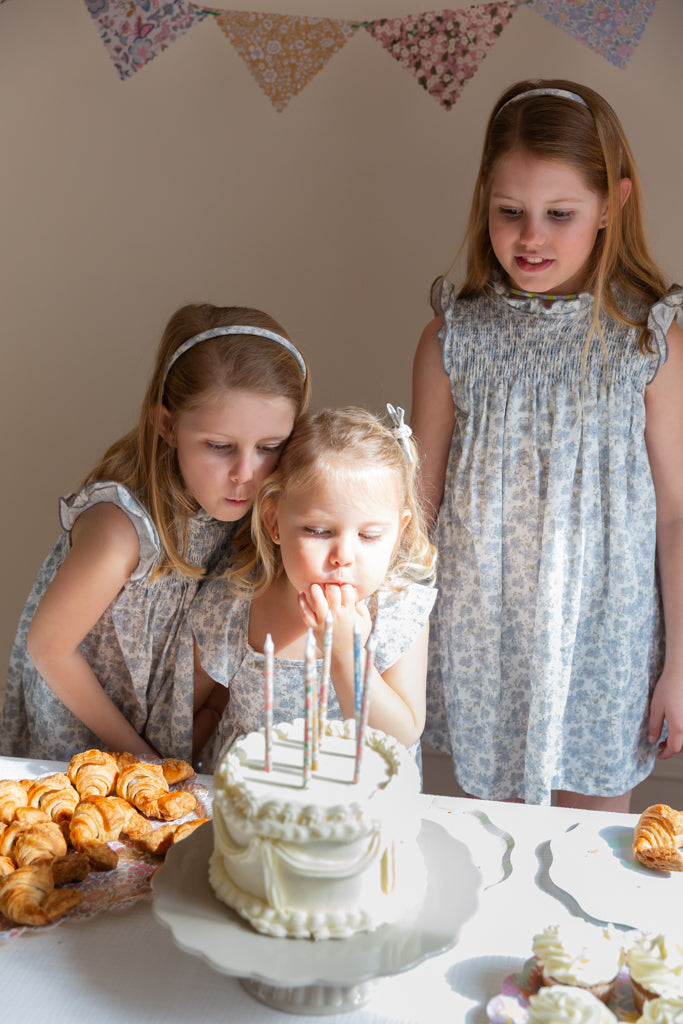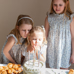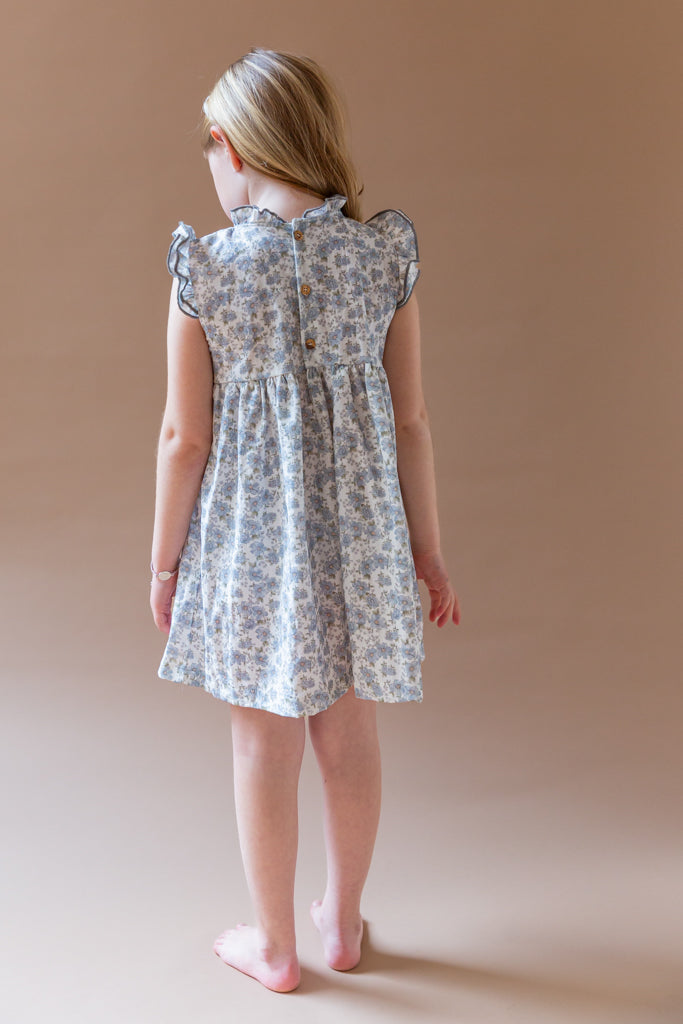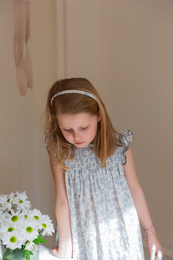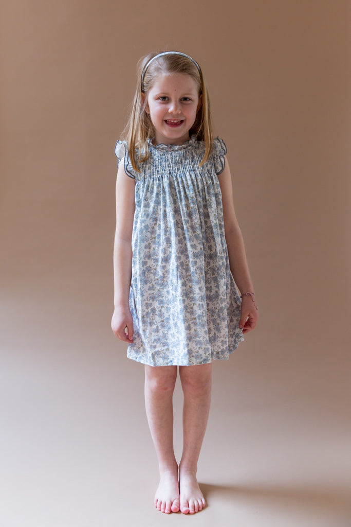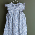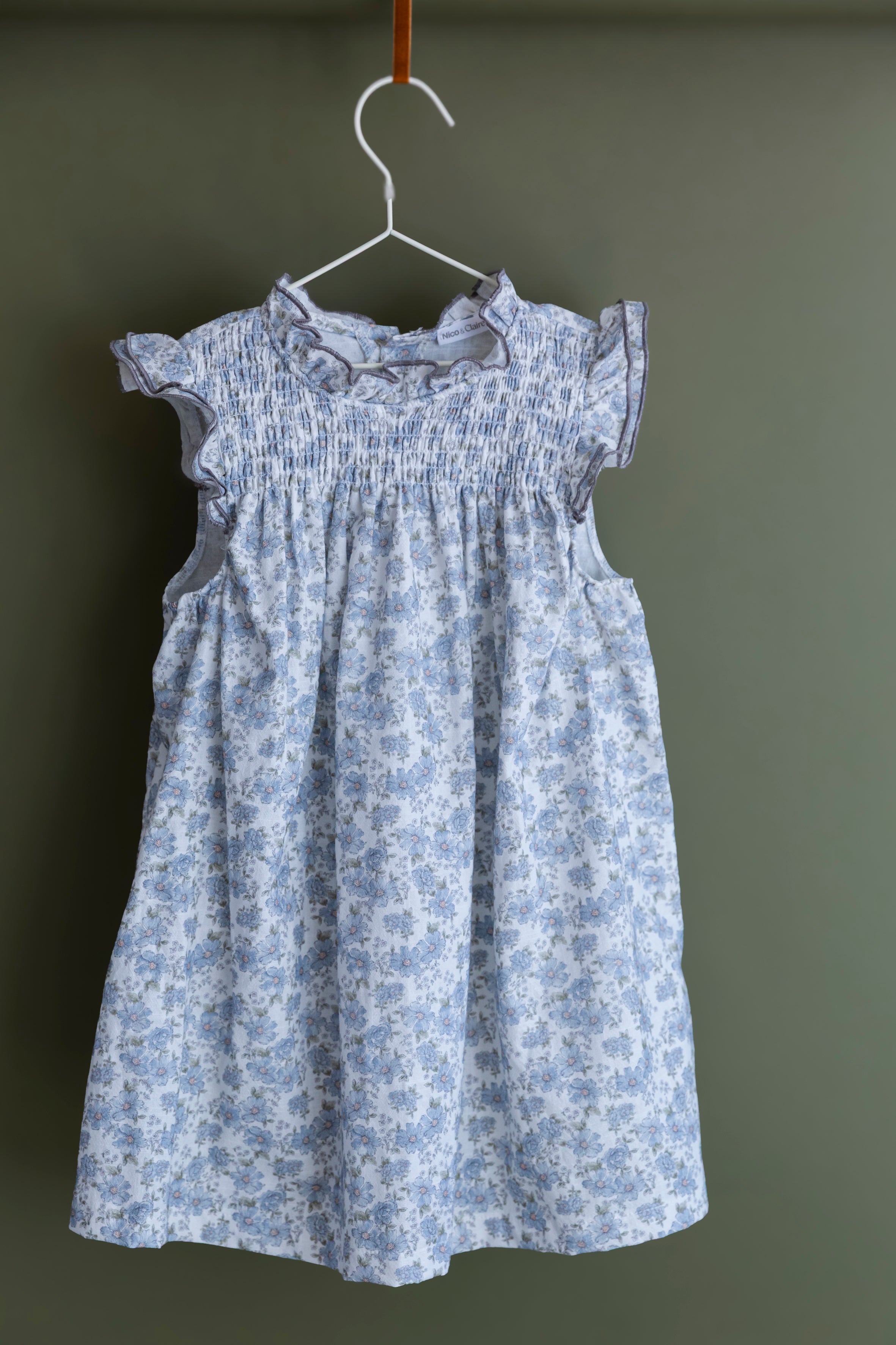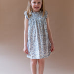 Vestido en flor Matilde con punto smock para niñas de 2 a 8 años. Es perfecto para primavera y verano ya que es fresco y con una chaqueta de algodón por si refresca es suficiente.