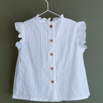 Blusa en rayitas blancas para niñas de 18 meses a 12 años. Es perfecta para primavera y verano ya que es de algodón y con un jersey o chaqueta por si refresca es suficiente. Está pensada para llevarla con nuestros shorts de niña en varios colores.